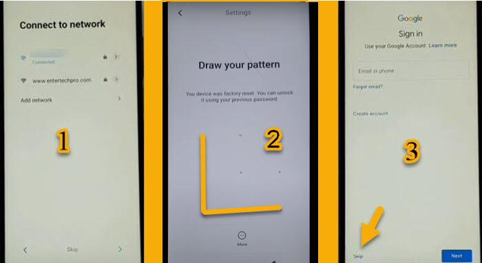 - وكما مبين في الصورة نقوم بادخال النمط الذي قمت بأنشأه في اول المقالة ثم نضغط فوق خيار تخطي تخطي .
